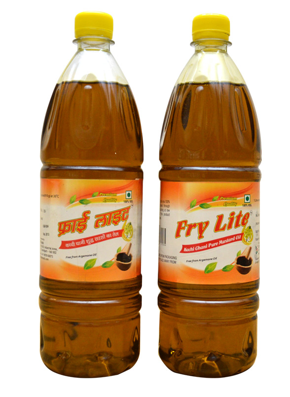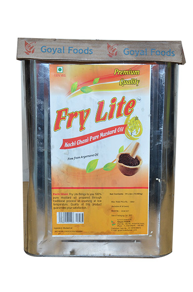 Frylite Pure Kachi Ghani Mustard Oil is cold pressed from traditional kolhus which gives the ‘Kachchi Ghani’ flavour and natural pungency. It has the lowest level of saturated fats, high content of MUFA and moderate content of PUFA. There is a worldwide preference to use oil extracted at low temperature which retains Omega 3, omega 6, Vitamin E and natural antioxidants. The oil is widely used for delicious cooking, aromatic body massage and preserving pickles. Mustard oil is composed mostly of the fatty acids oleic acid, linoleic acid and erucic acid.